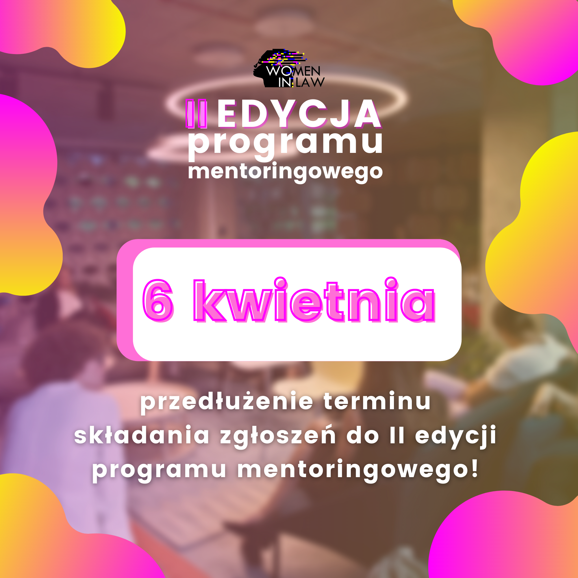 Chcielibyśmy poinformować o przedłużeniu terminu rekrutacji do II Edycji Programu Mentoringowego Fundacji Women in Law.